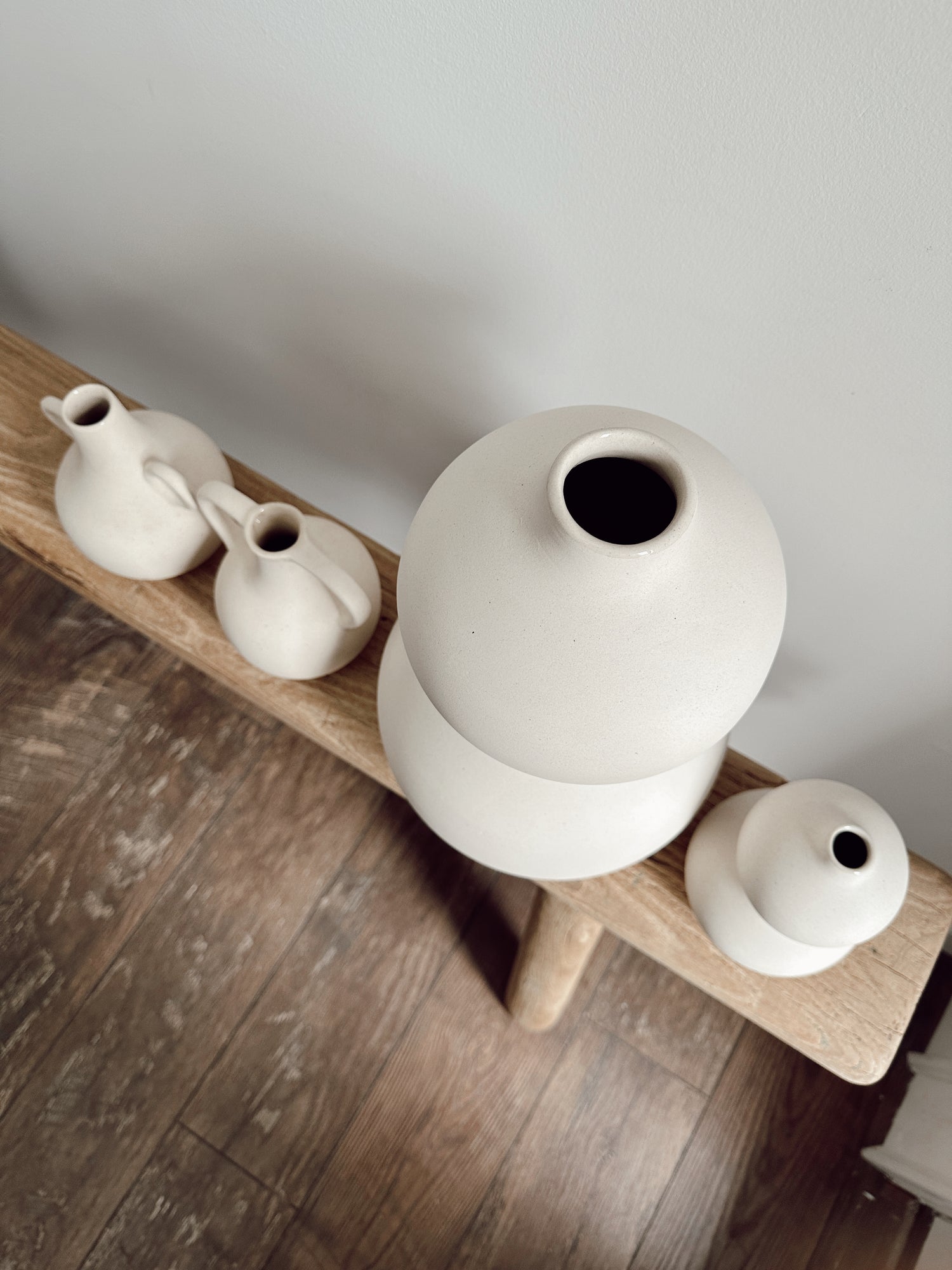 Our Olio Vase is another minimal sculptural piece crafted for contemporary homes. Place it along with the sunlight for a light & shadow experience throughout the day. This piece can easily become a focal piece in any spatial setting, be it a home, cafe, or office space.