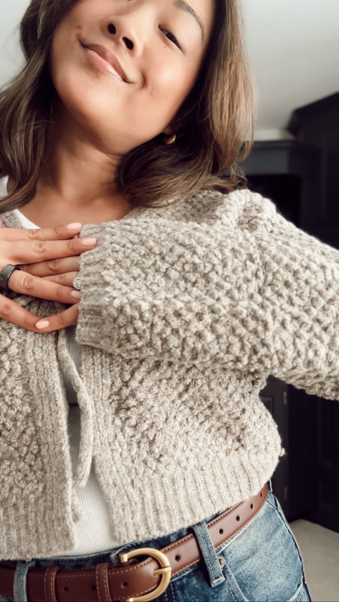 Upgrade your wardrobe with our new Popcorn Knit Tie Cardigan! Perfect for any season, this versatile piece offers both style and comfort. The unique popcorn knit design adds texture, while the tie accent adds a touch of sophistication. Stay fashionable year-round with this must-have cardigan.
