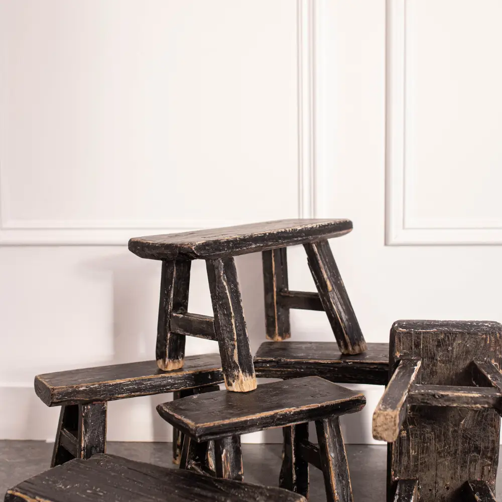 This Atelier Baby Elm Bench in Vintage Black is inspired by Chinese wooden furniture. These benches are made with repurposed antique elm doors sourced from northern China.