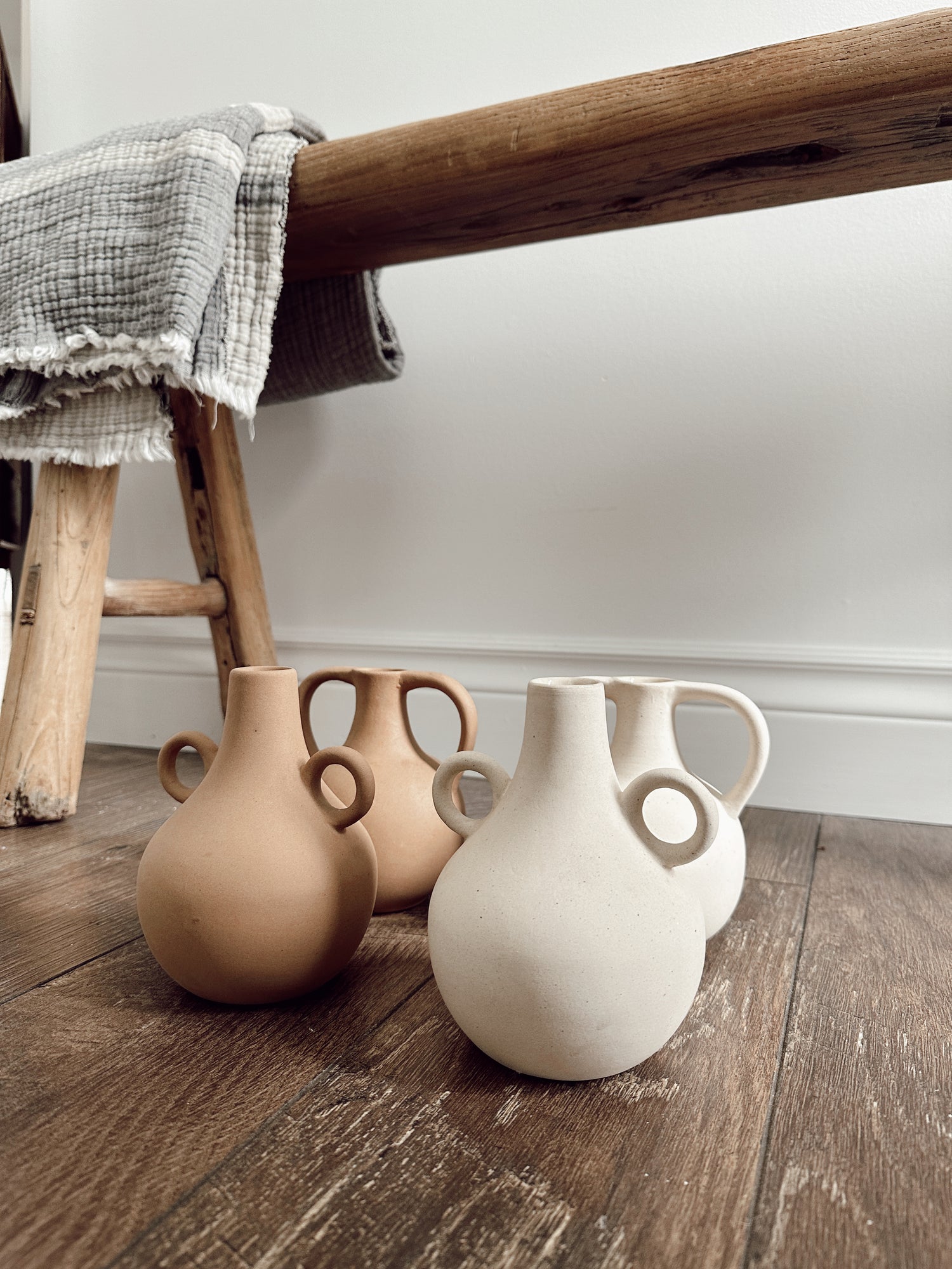 These ancient-shaped vases can be paired with dried flowers and reside as a beautiful sculptural piece in the decor space. Combine them with ceramic vases to play around with different textures and earthy looks.
