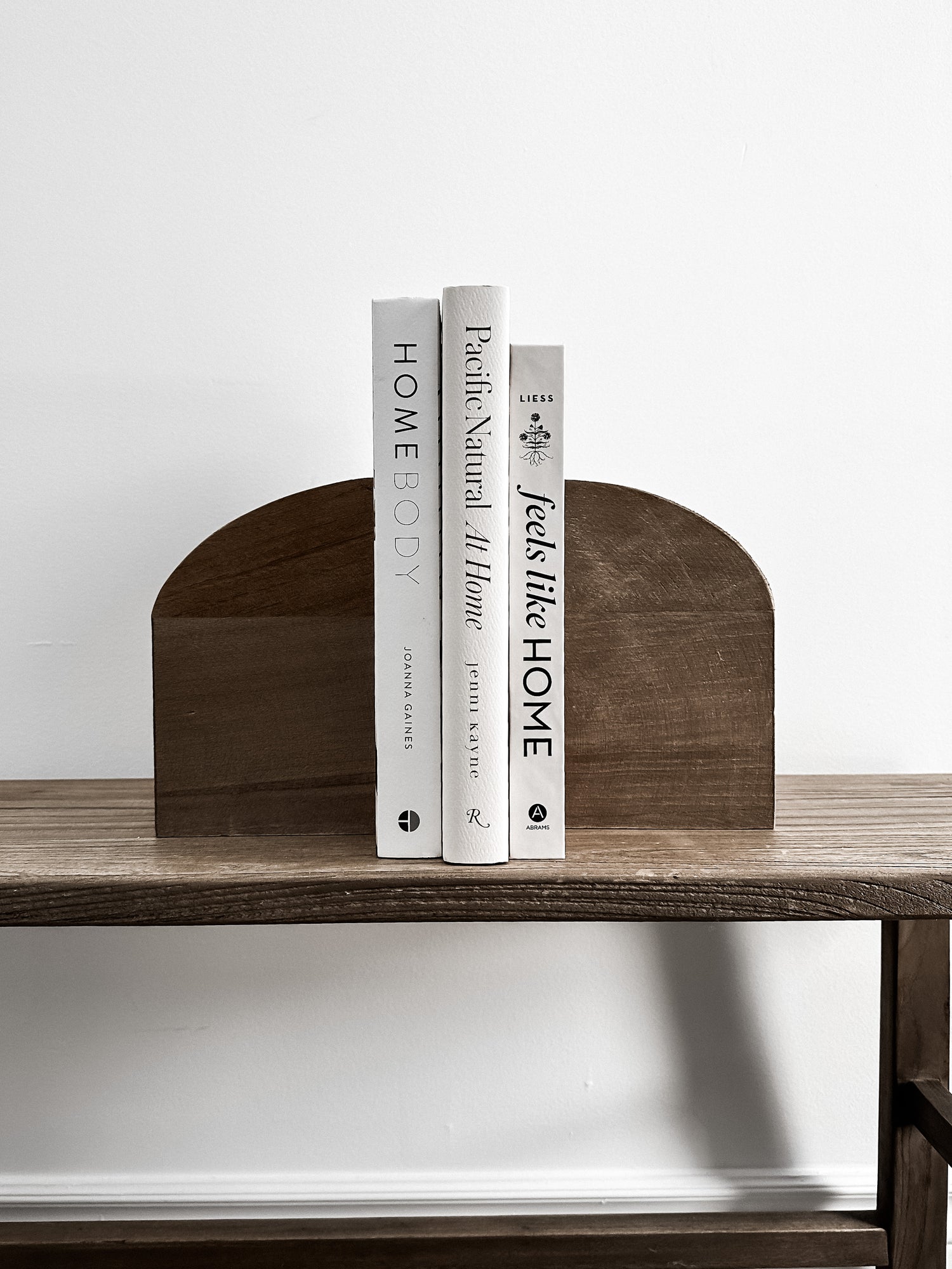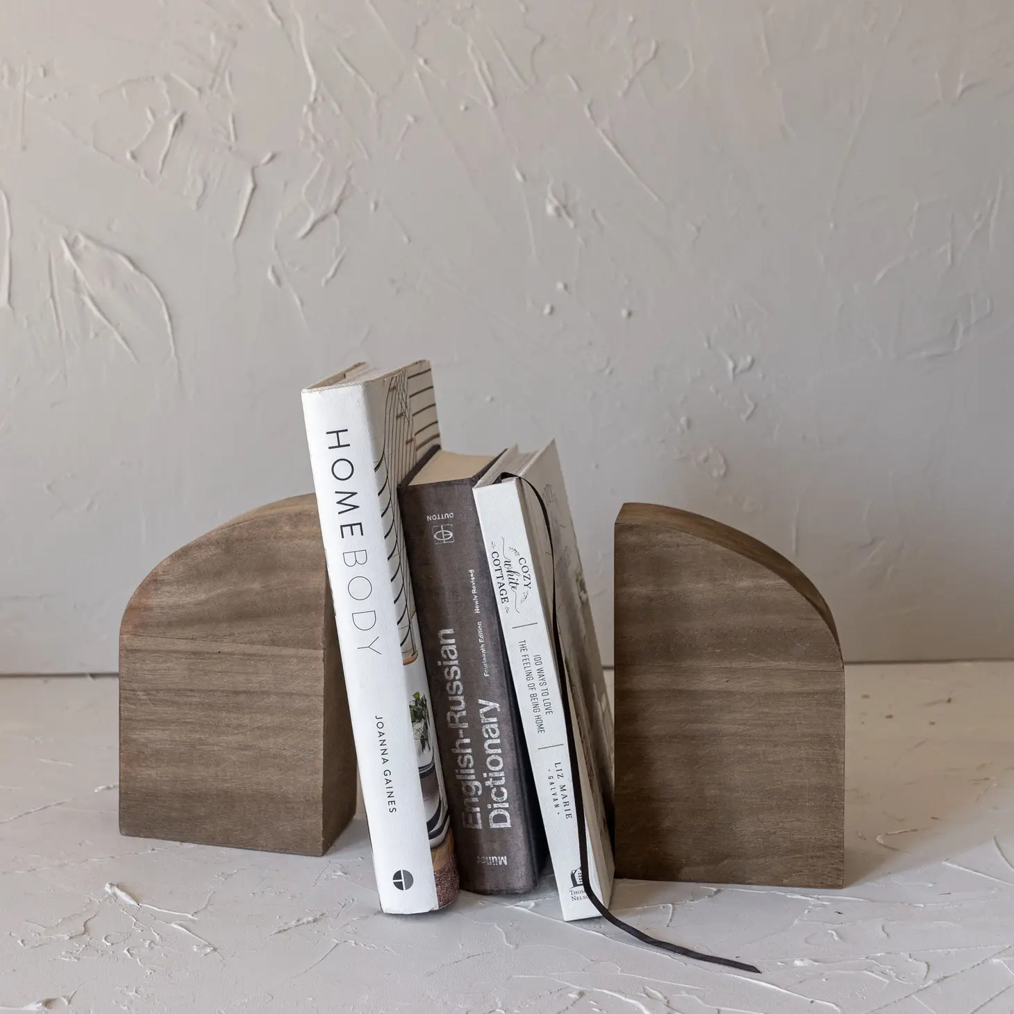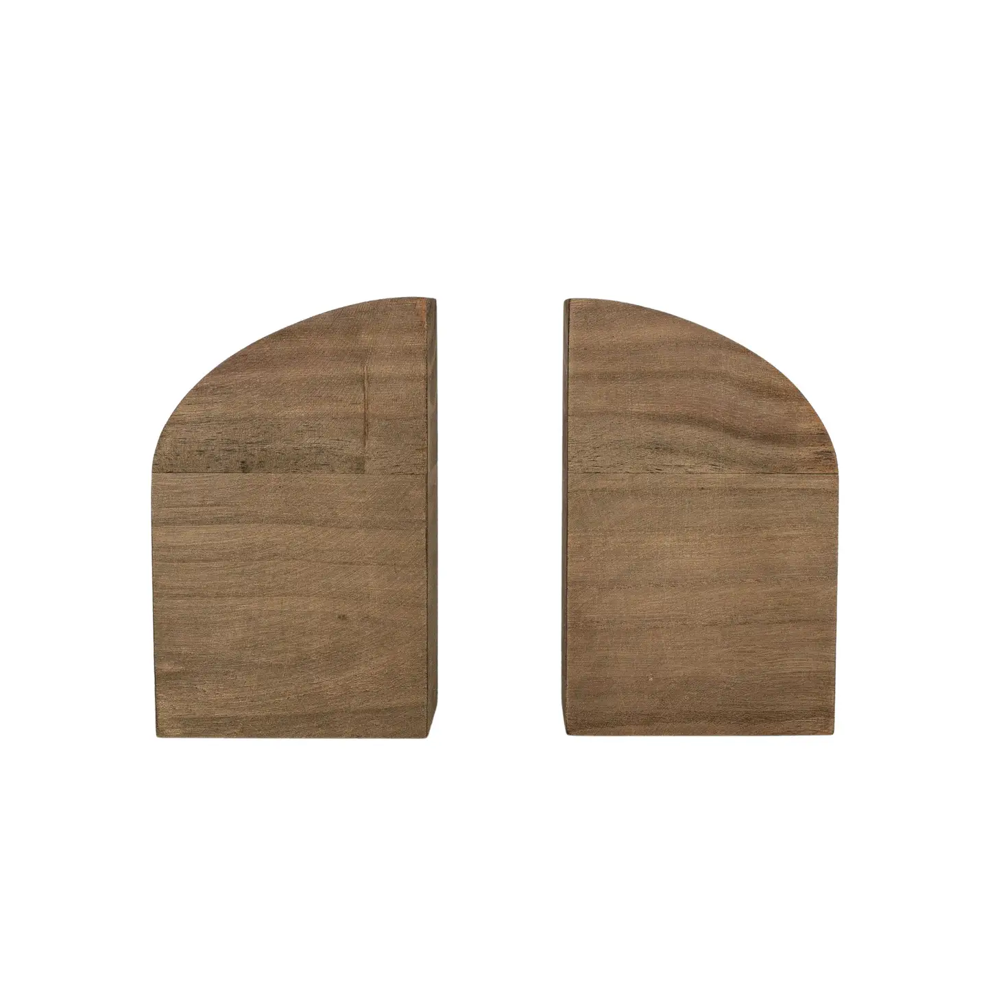 Keep your bookcase organized with a set of arched bookends. These lovely bookends feature natural wood with a rustic arched construction. Creating a timeless and tidy space is easy with these bookends. The neutral design offers a clean and charming way to organize your shelves, while letting your books be the focus.