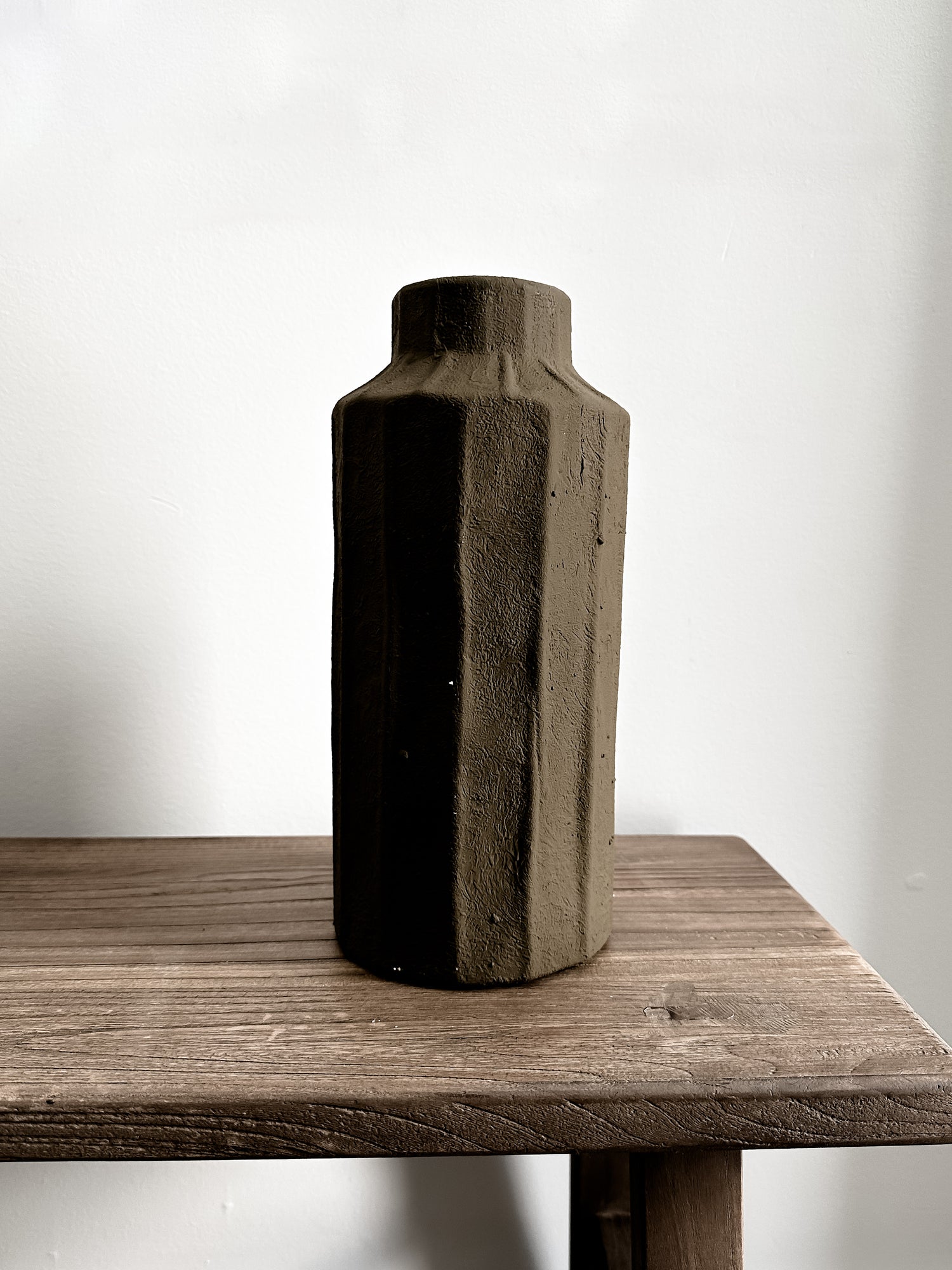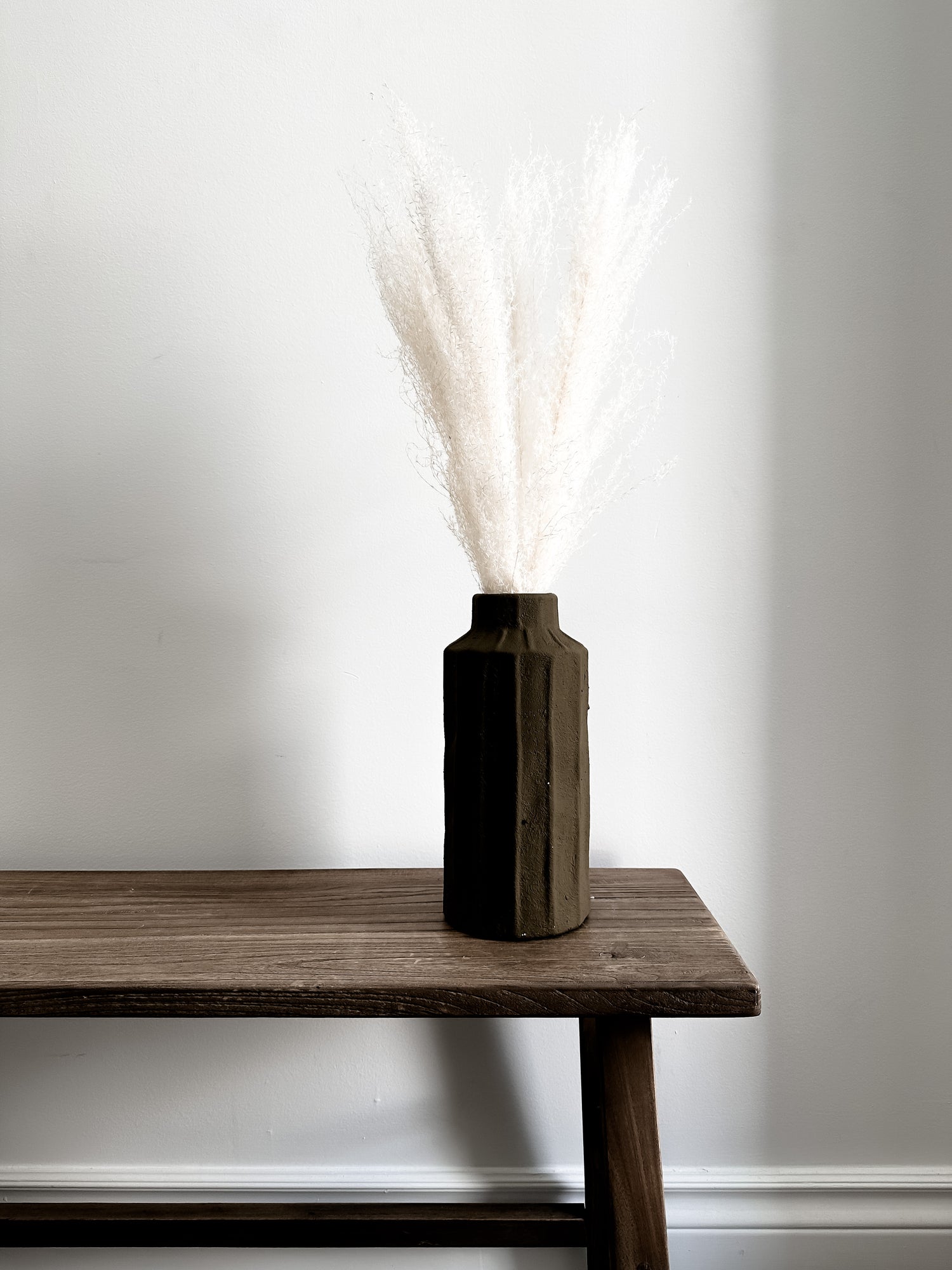 Show off your favourite stems with this ceramic vase in earthy green. This vase is glazed with a natural matte green textural glaze and embossed with a vertical ribbed texture. Exuding a raw, earthy vibe, this stoneware vase pairs well with Southwest and rustic leaning decor styles.