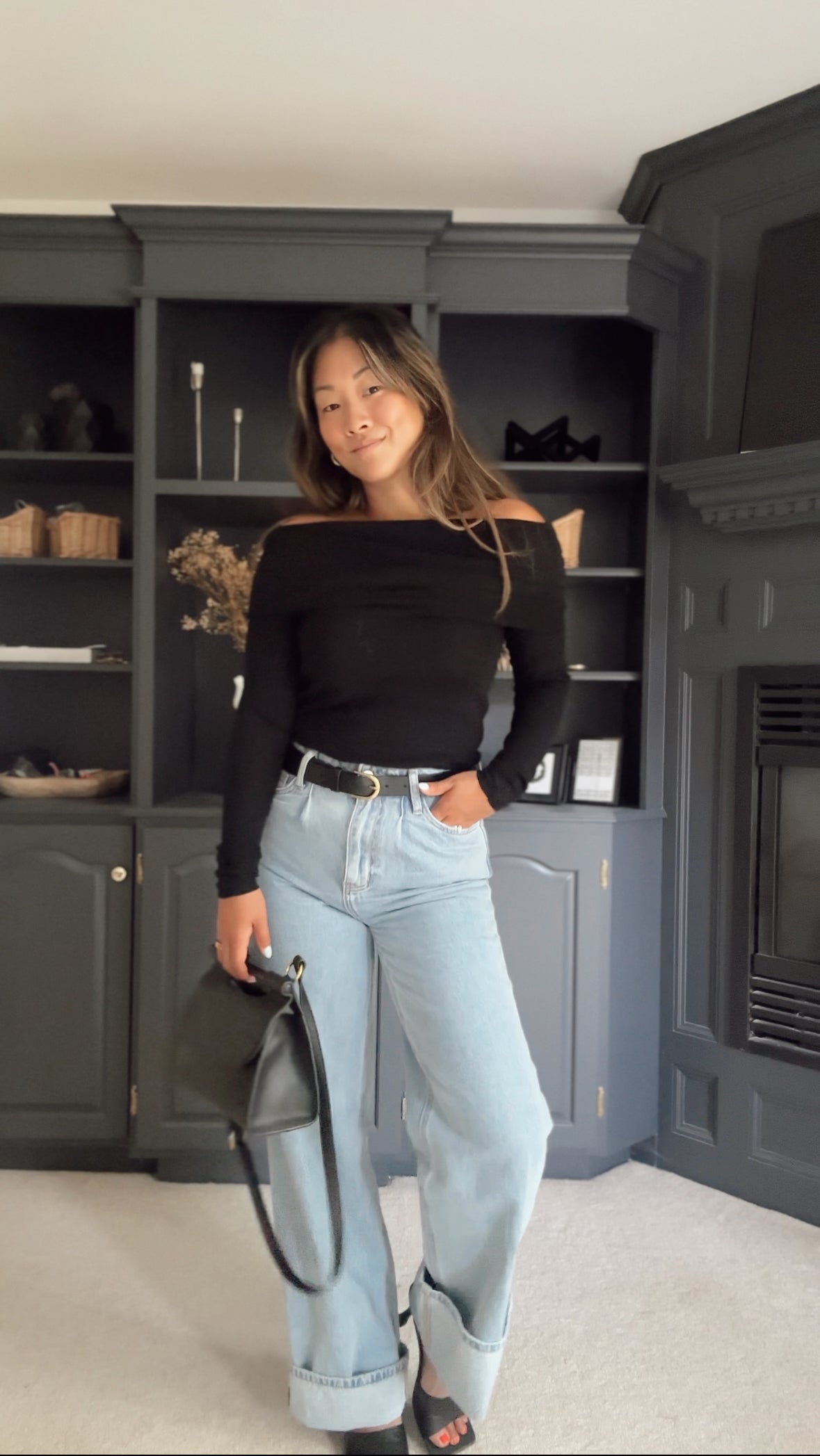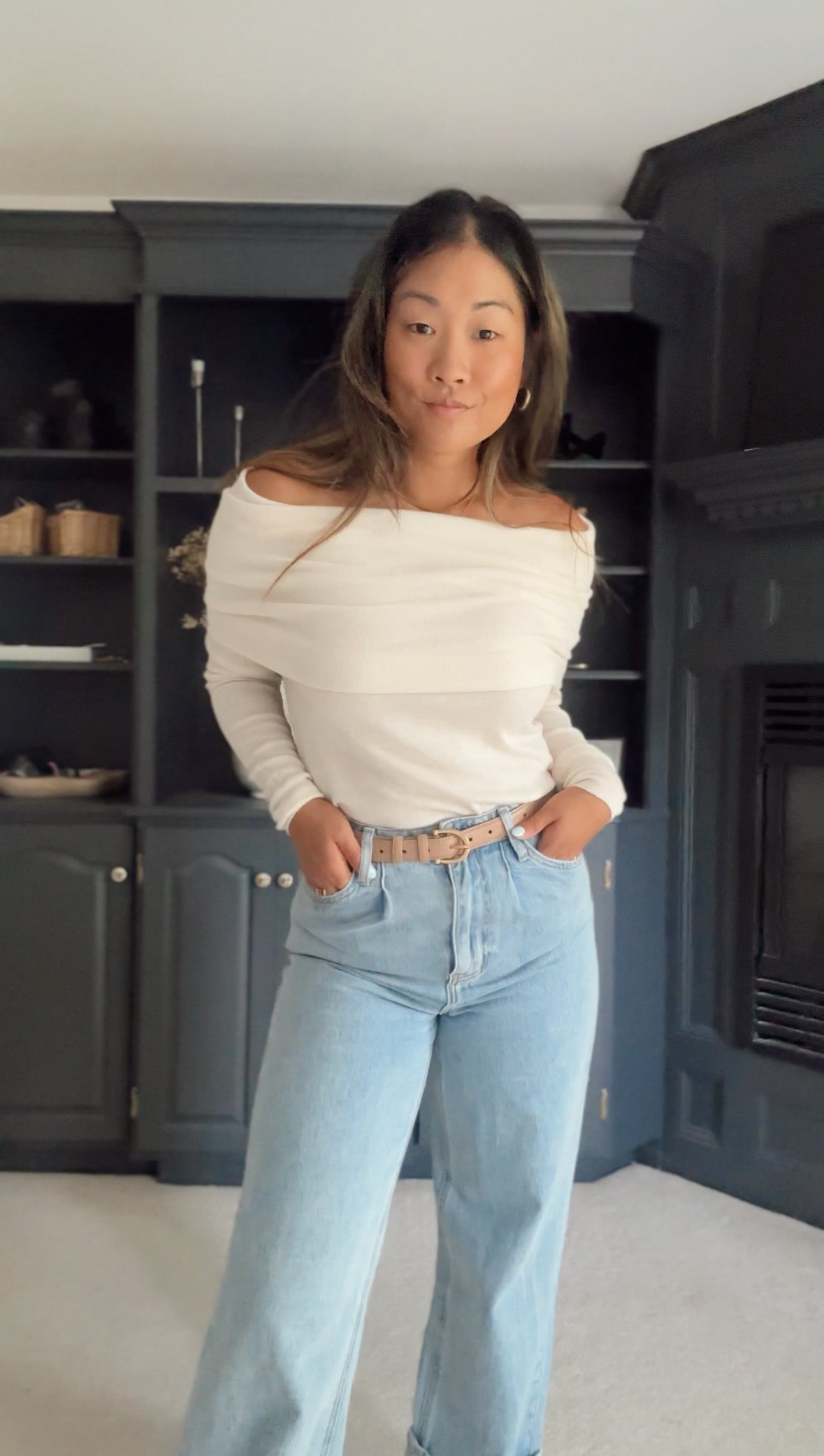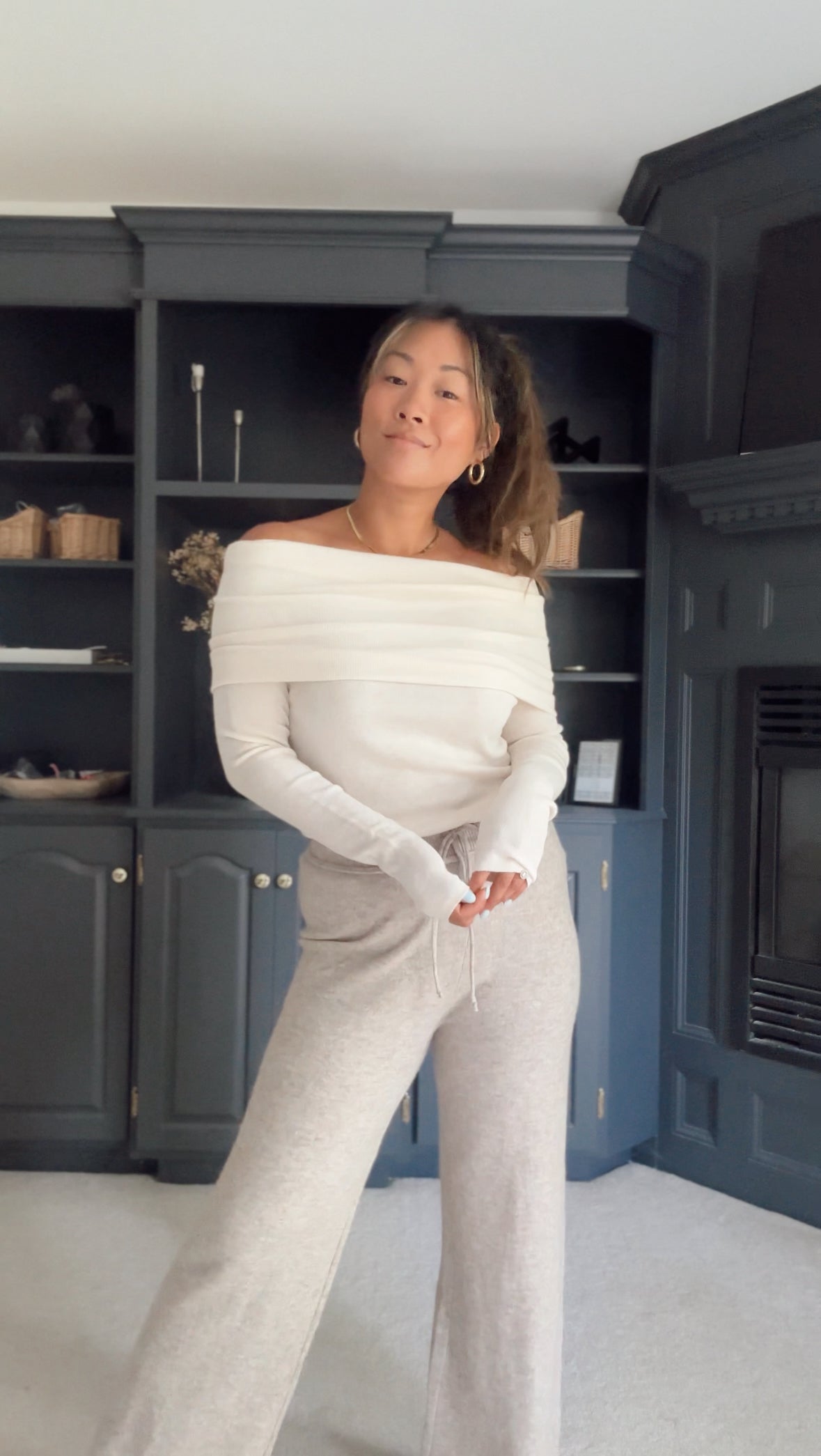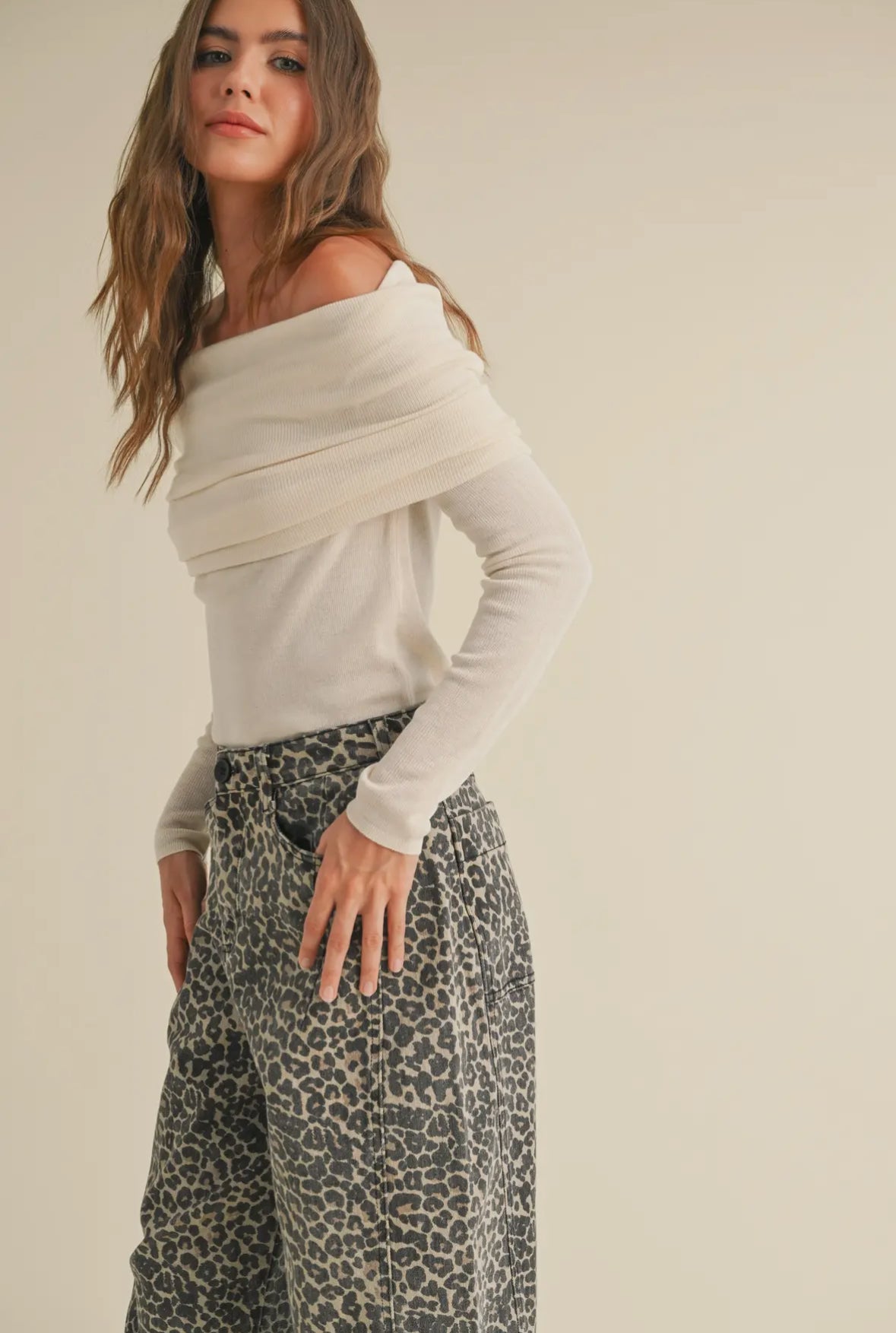 This elegant off the shoulder sweater top features a stretchy and timeless wool blend fabrication, perfect for a classic and elegant silhouette. A versatile addition to any wardrobe, it adds a touch of sophistication and can be dressed up or down for any occasion. Available in cream or black for a sleek and chic look.