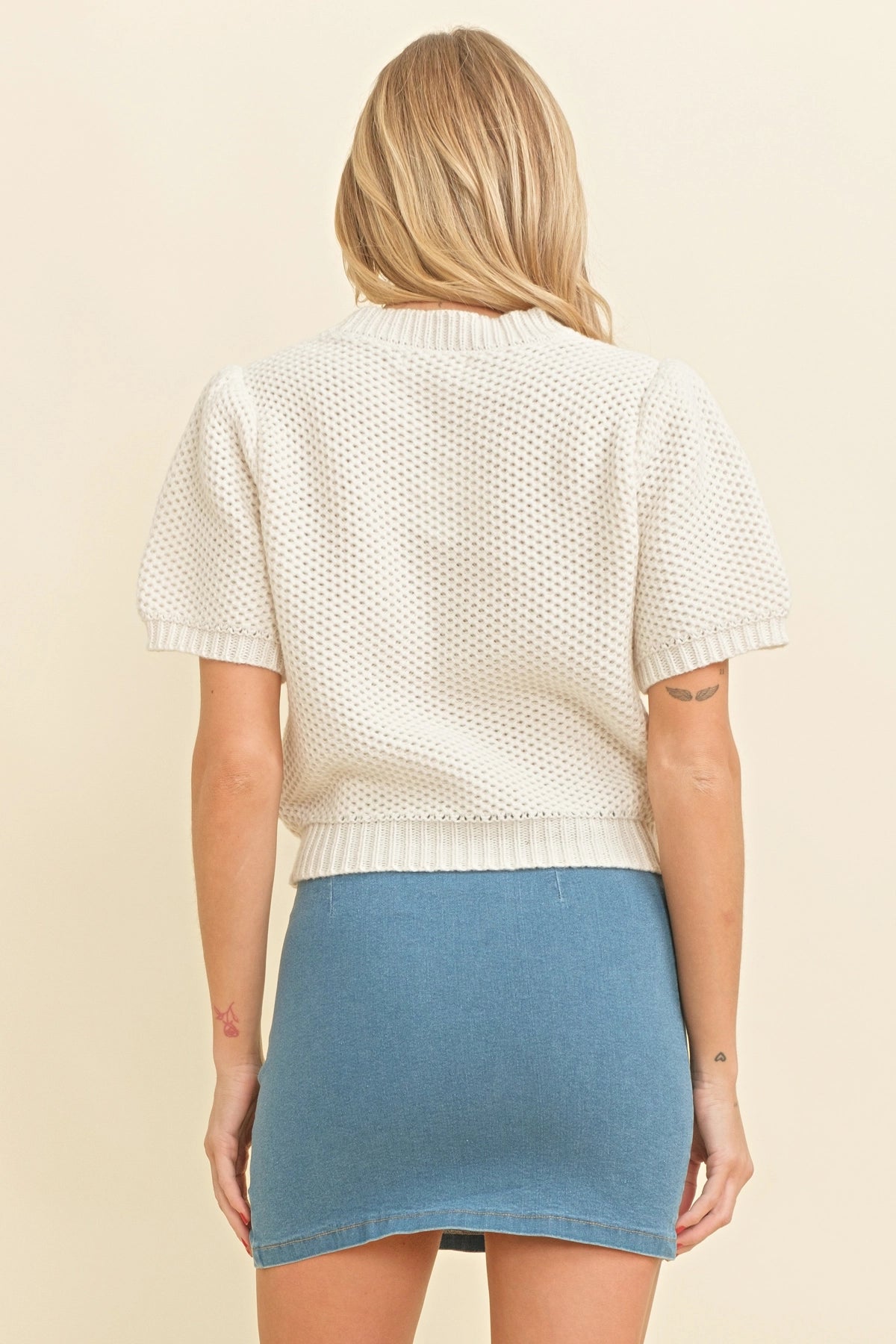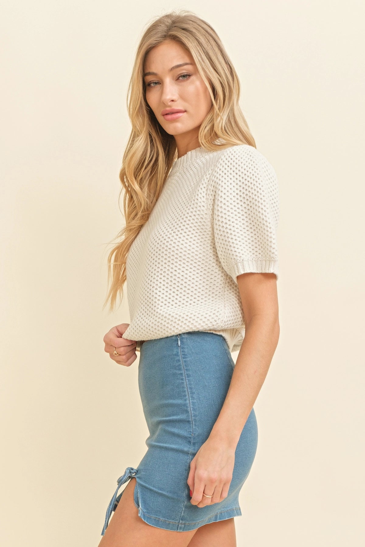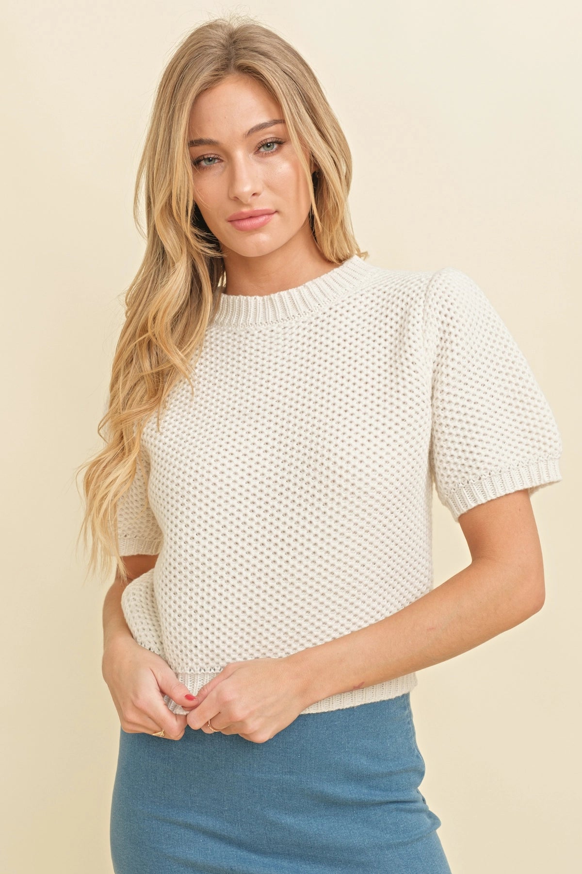 A classic knit top that will help you transition into any season. This luscious knit sweater top is so soft to the touch. You'll love it's classic crew neckline and slight bubble sleeve. Pair with your favourite trousers or dress them down with your favourite jeans.