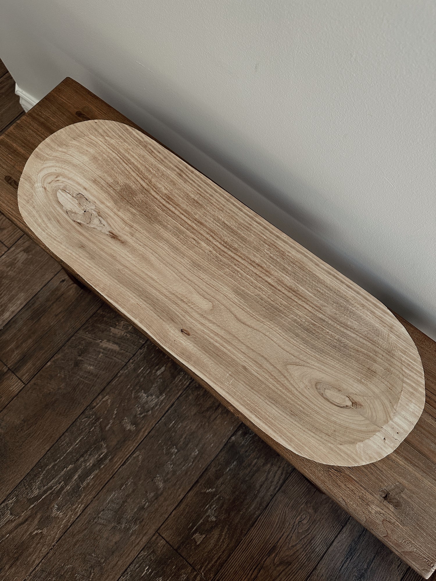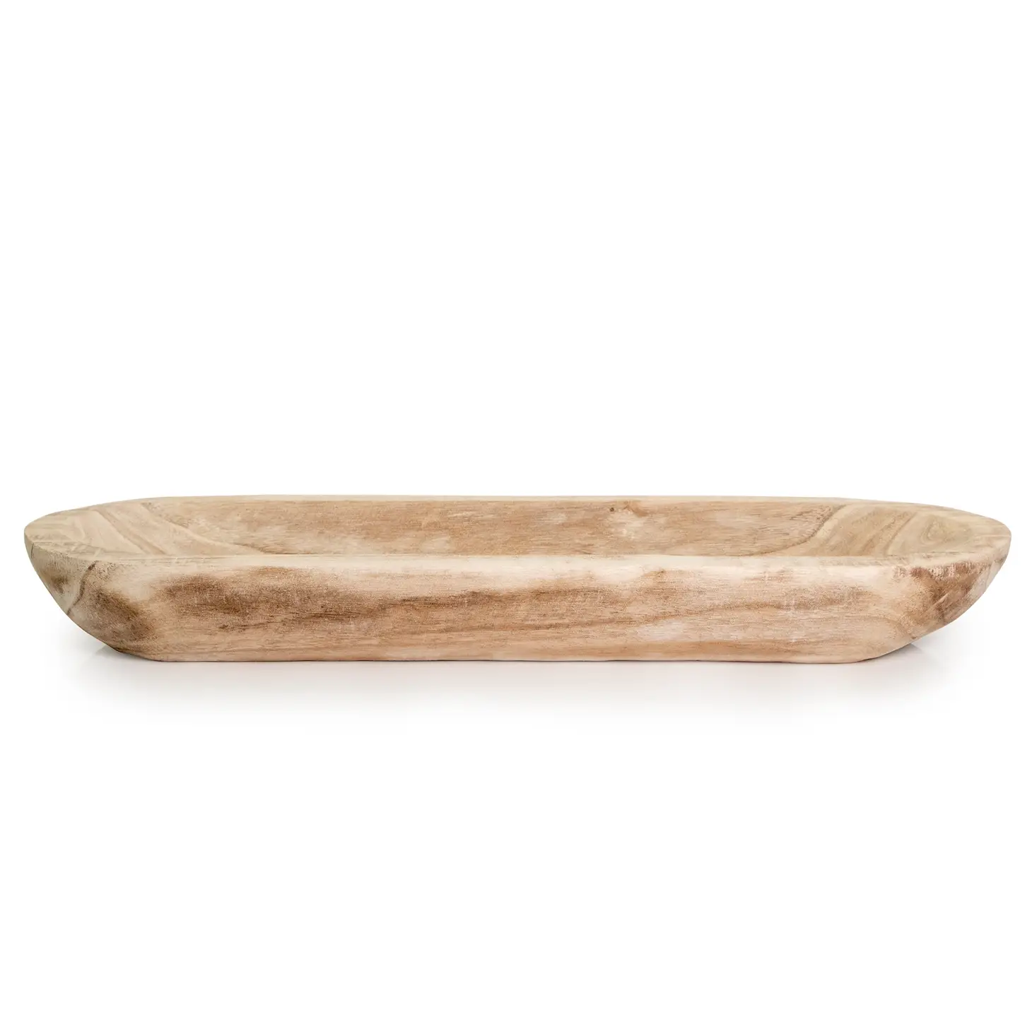 Hand carved dough bowl made from Paulownia wood that is very light in colour and perfectly matches a lighter coastal design theme. Our long Paulownia dough bowl is perfect for any table or shelf and fits seamlessly with a natural light in colour interior design theme.