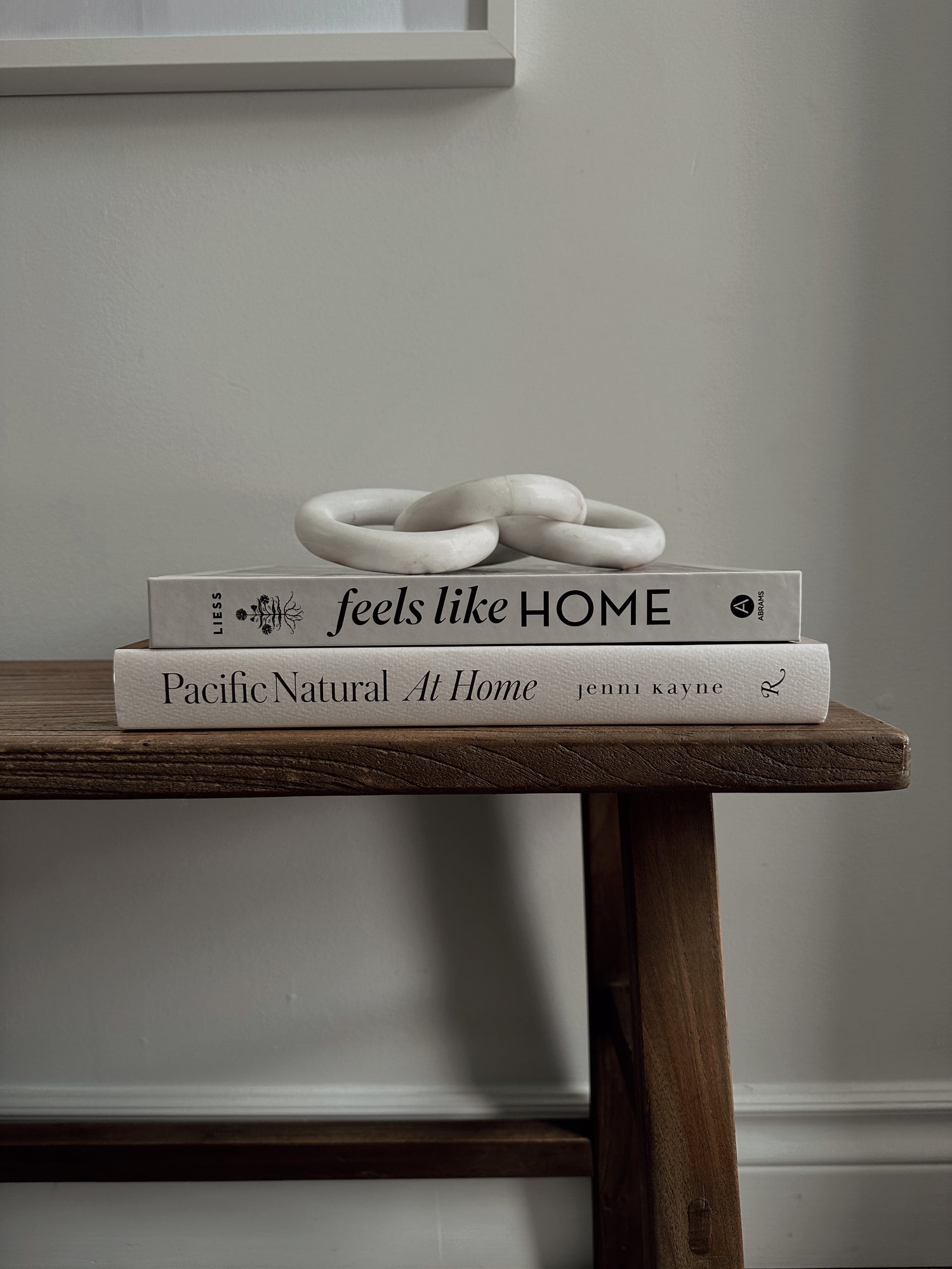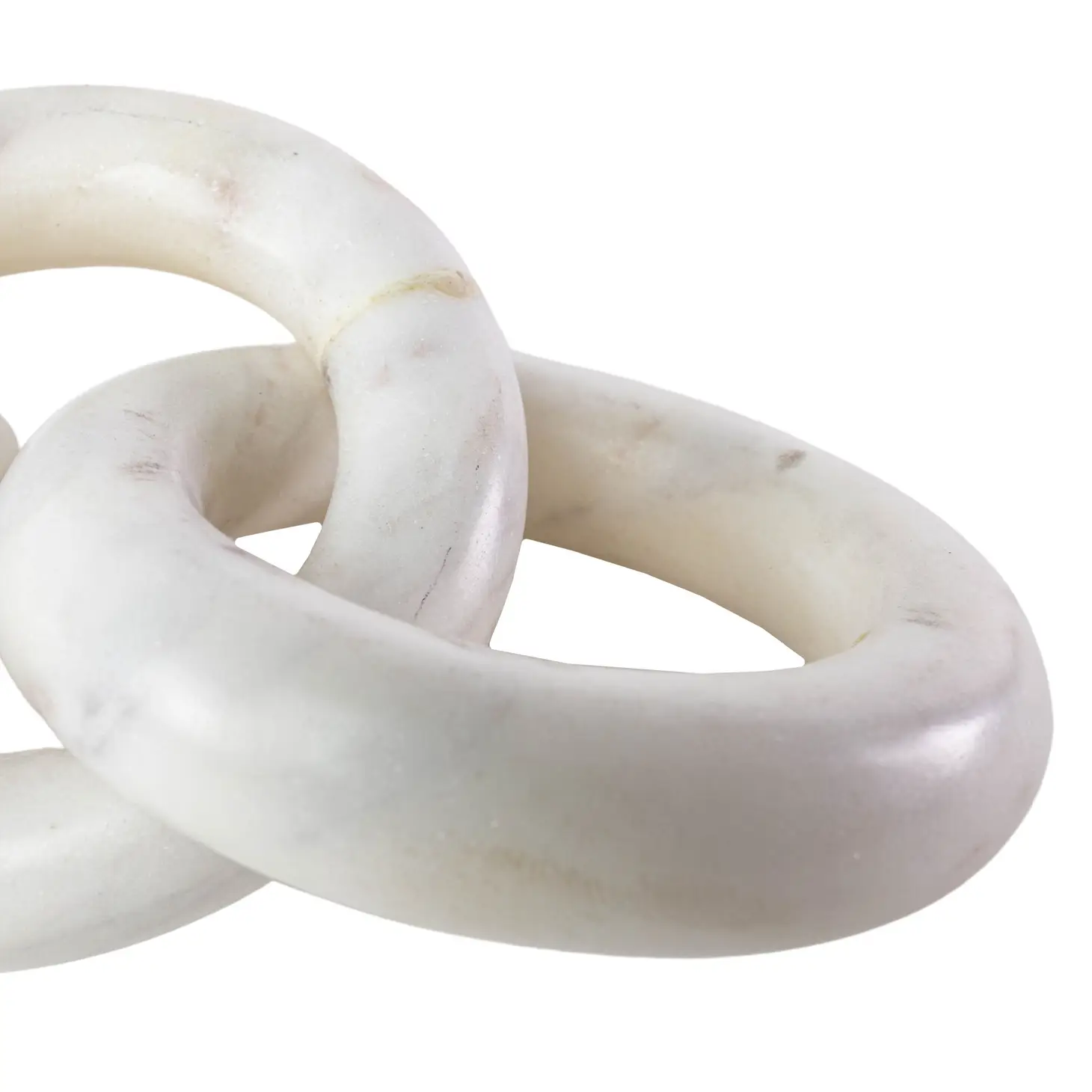 Three solid white marble rings that are linked together to form a decorative chain accent will be a great addition to your modern home. Place the chain on your bookshelves, coffee table, or display on your office desk for a bold statement piece.