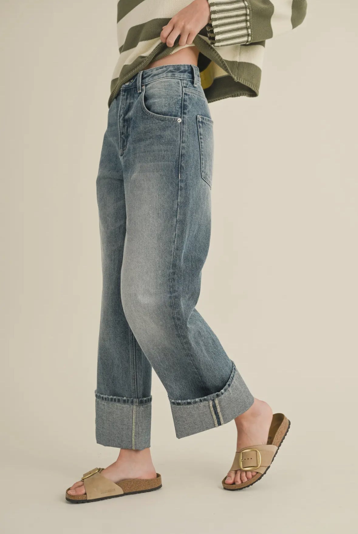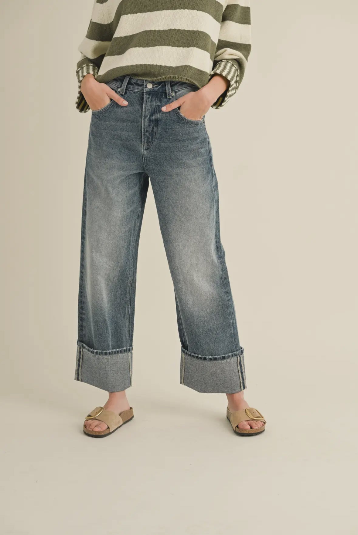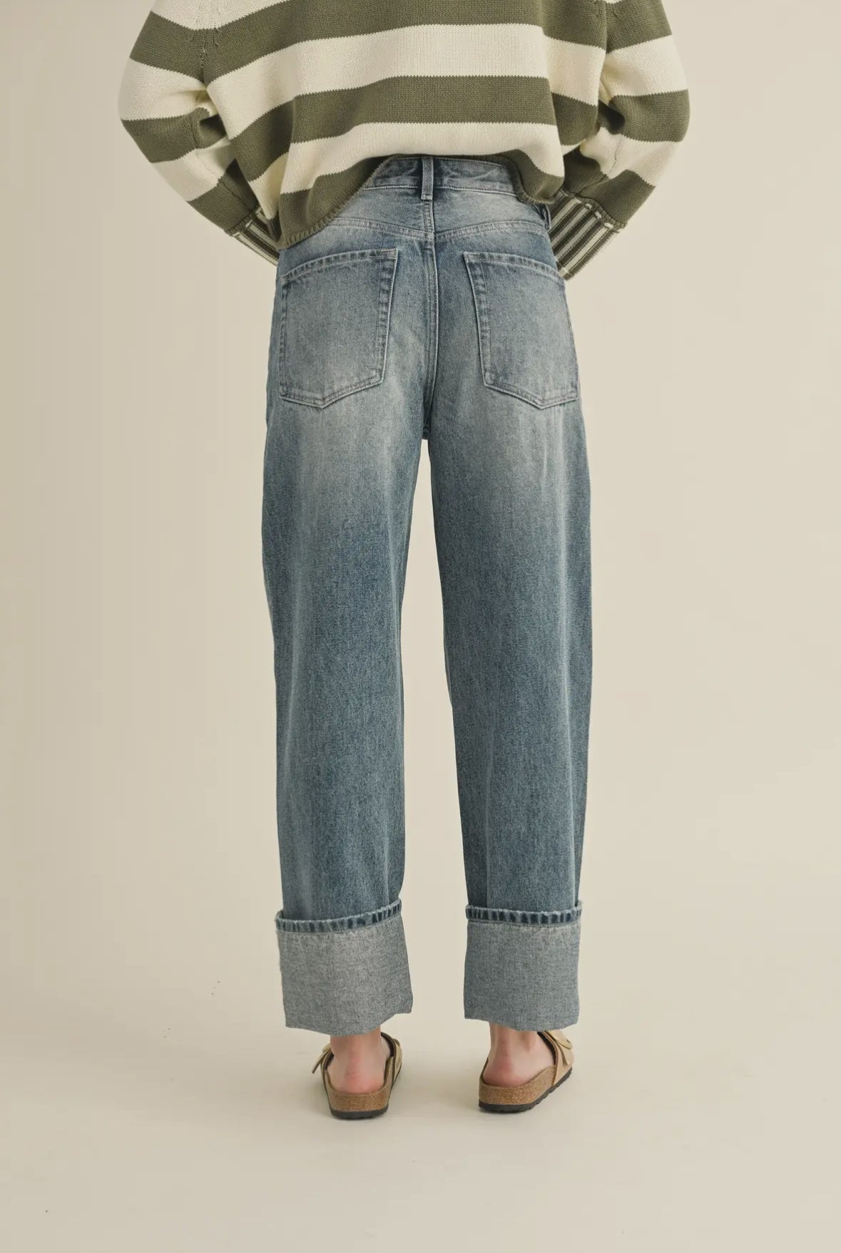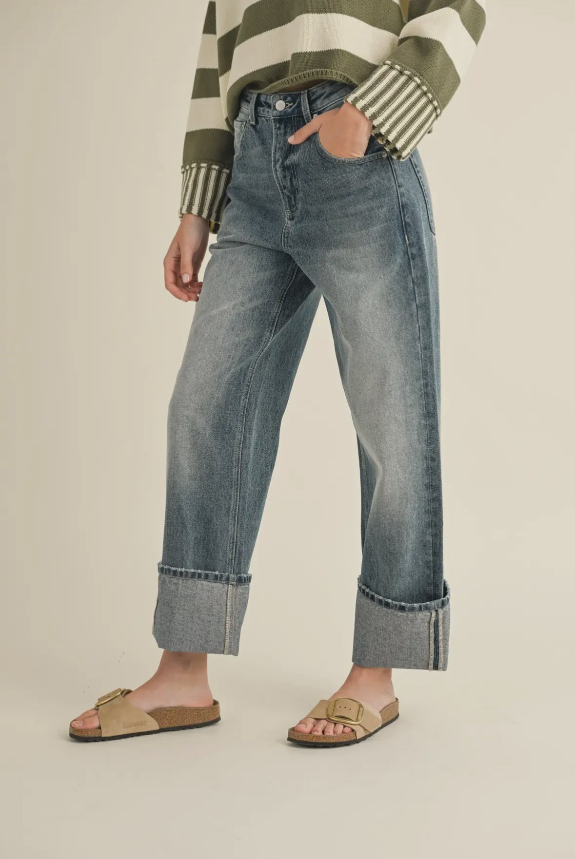 Get ready to strut your stuff in our straight leg cuffed hem denim pants! These jeans feature a stylish cuffed folded hem, 5 pocket design, and a zipper fly. Perfectly paired with your Birkenstocks Boston or Ugg Tazz slippers, they offer both comfort and style. Don't miss out on this must-have addition to your wardrobe!