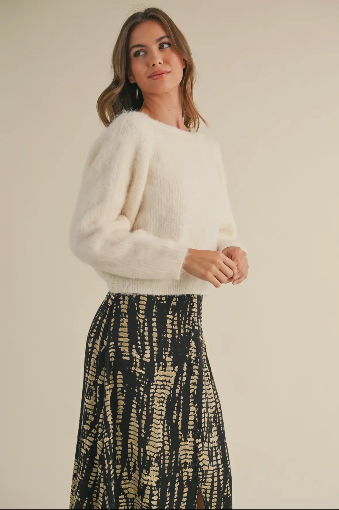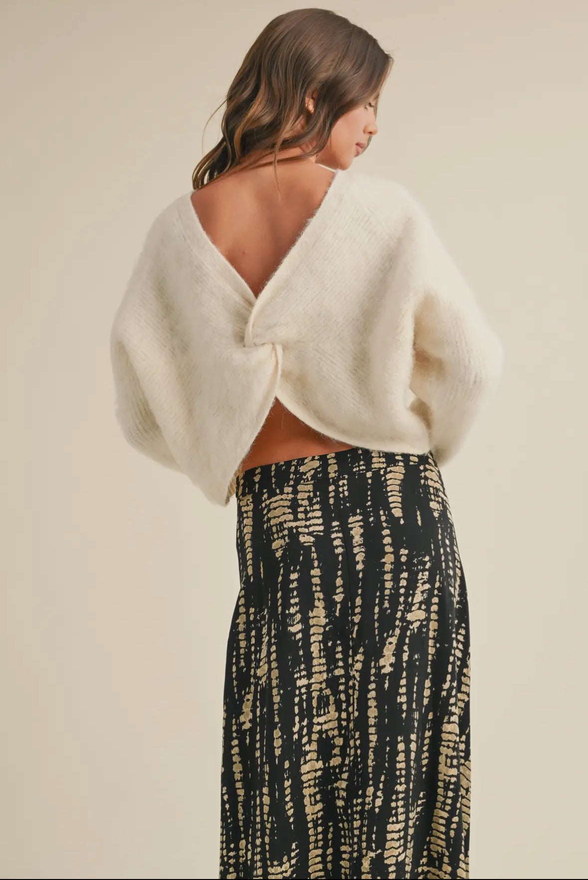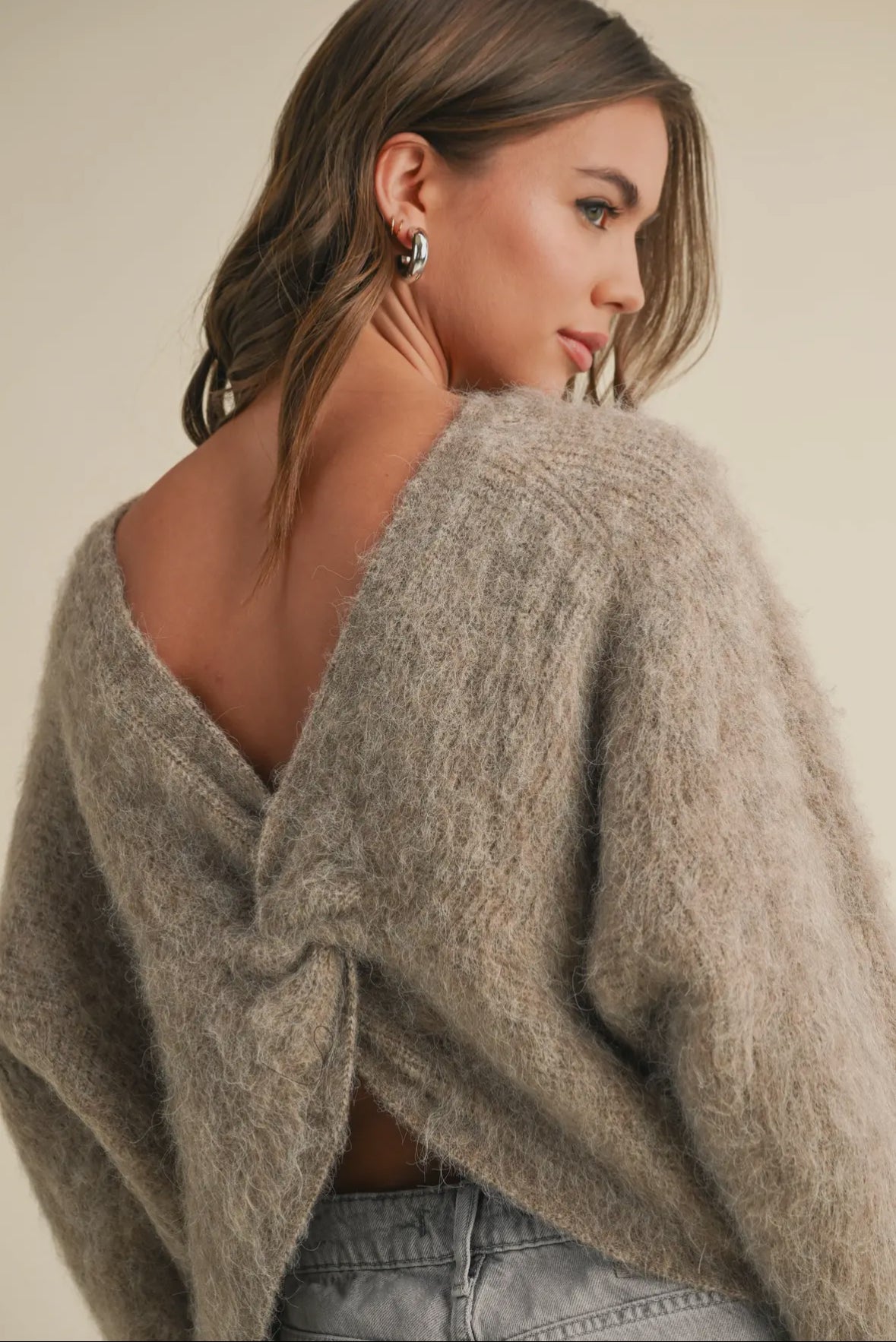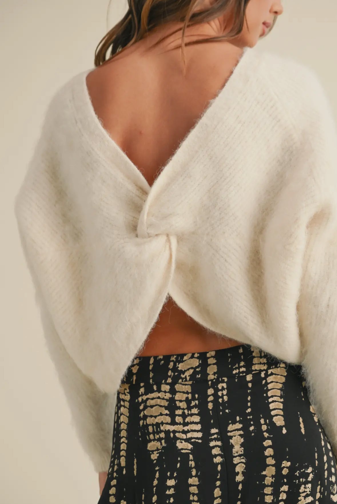 Discover the ultimate in cozy chic with our Twisted Reversible Sweater Top. Crafted with a super soft feather knit, this top offers the perfect blend of comfort and elevated elegance. With its twisted detail and the ability to be worn reversed, this top is perfect for the fall and winter seasons. Experience the versatility and style of our must-have sweater top.